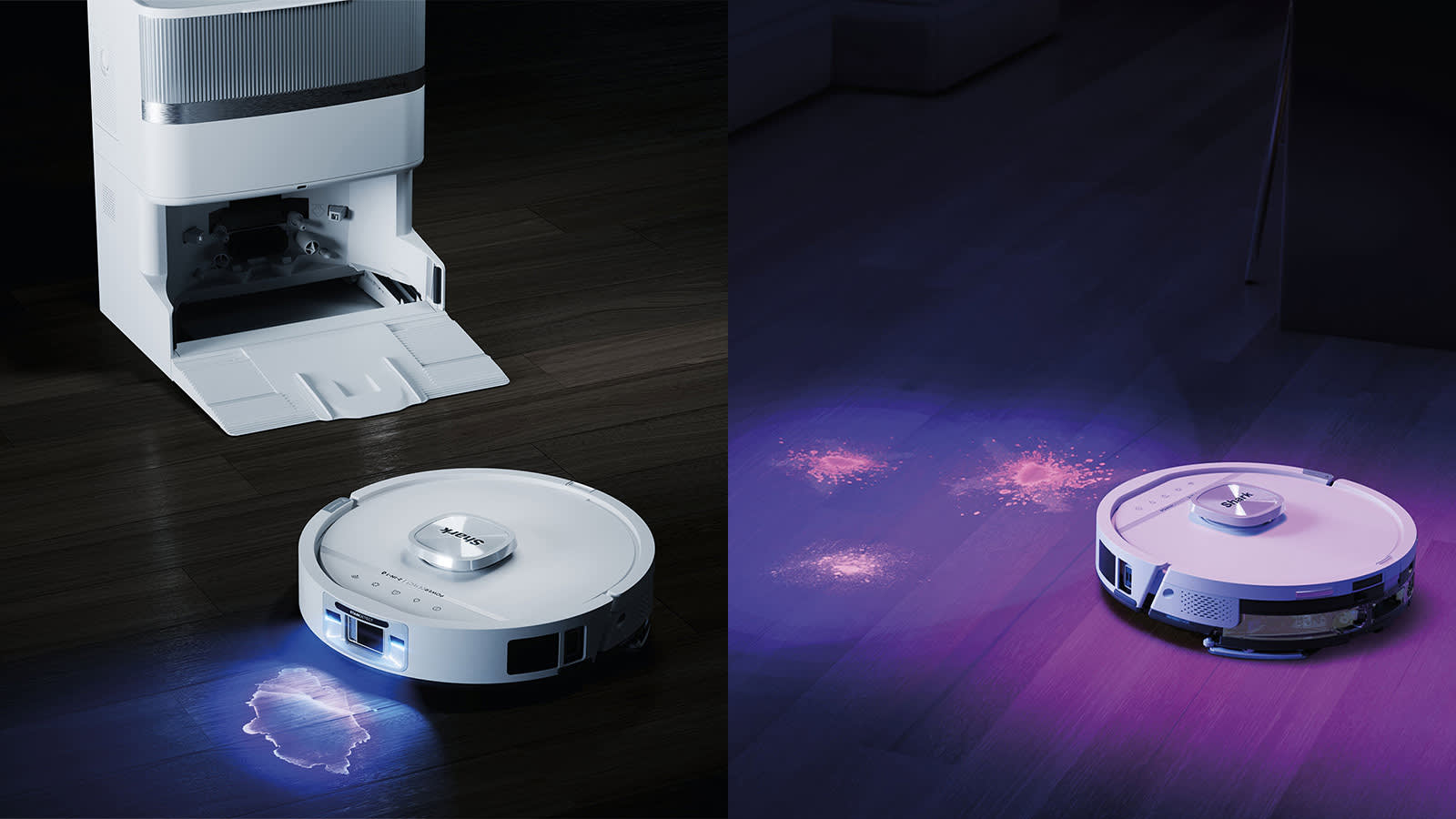Entdecke den PowerDetect UV Reveal 2-in-1 Wisch- und Saugroboter, Sharks ersten Saugroboter, der dank UV-Licht unsichtbare Schmutzrückstände erkennt und mit HyperSonic Mopping reinigt.
