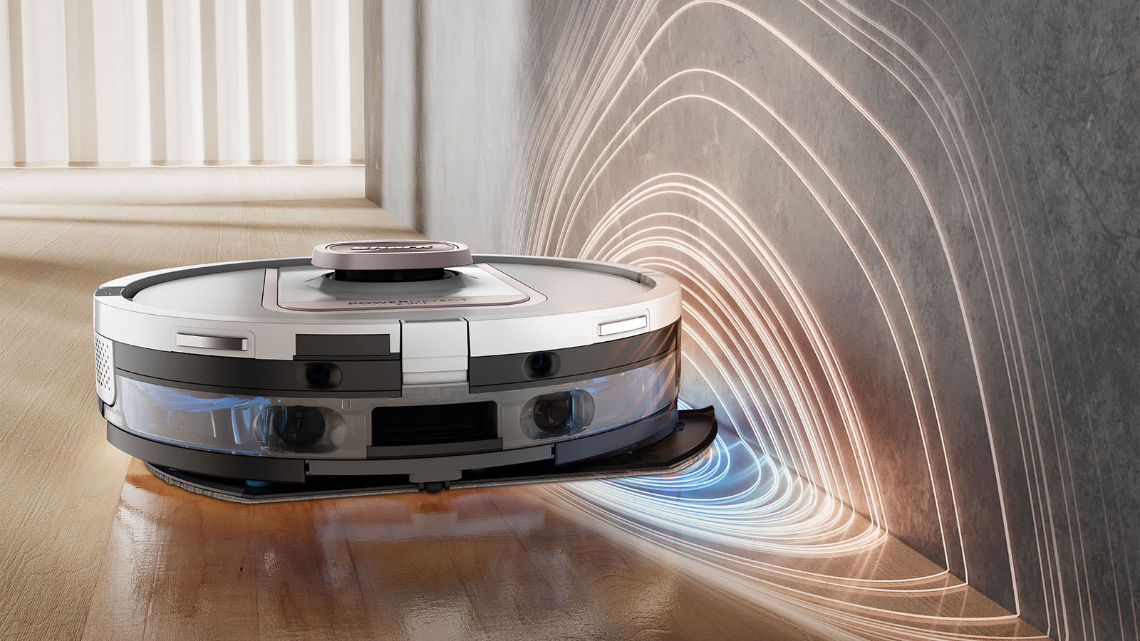 EdgeDetect-Technologie sorgt für eine präzisere Reinigung, indem Luft in Ecken geblasen und das Wischpad um bis zu 2,5 cm ausgefahren wird, für eine gründliche Kantenreinigung, die keine Stelle auslässt.